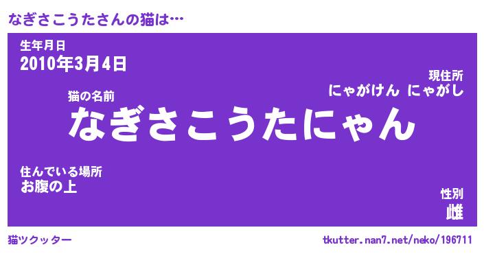 | 2回繰り返すあだ名 | 『なぎなぎ』『ななぎぎ』『うろうろ』 |