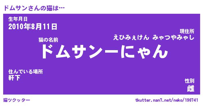 | ポケモン風あだ名 | 『ドムチュウ』『ドムサダネ』 |