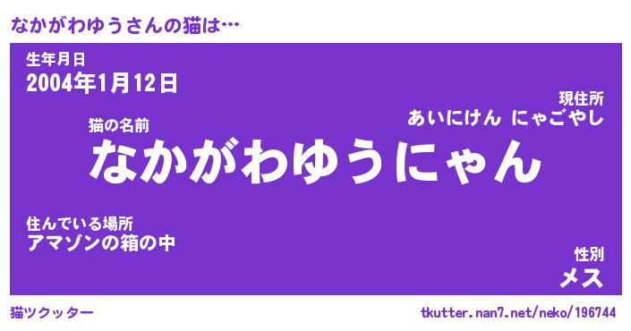 | 男性向けラノベタイトル風あだ名 | 『なかがわゆうの憂鬱』 |