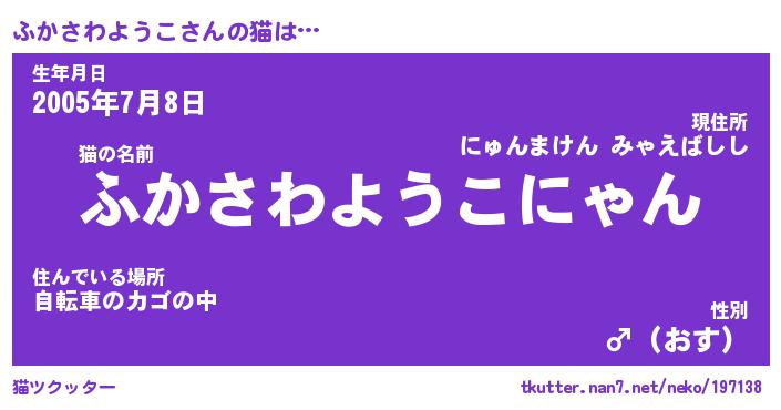 | 肩書あだ名 | 『ふかさわようこ御曹司』 |