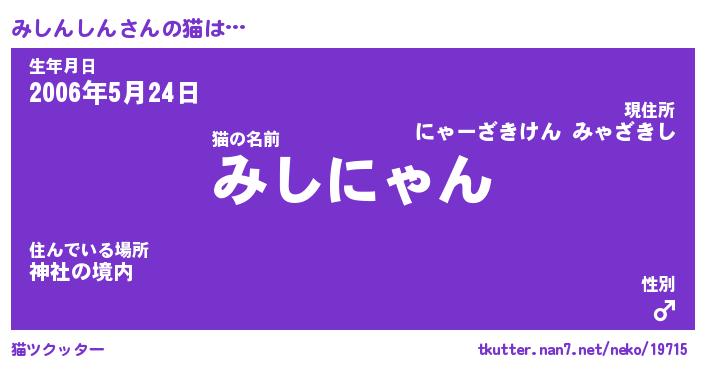 | 男性向けラノベタイトル風あだ名 | 『みしんしんの憂鬱』 |