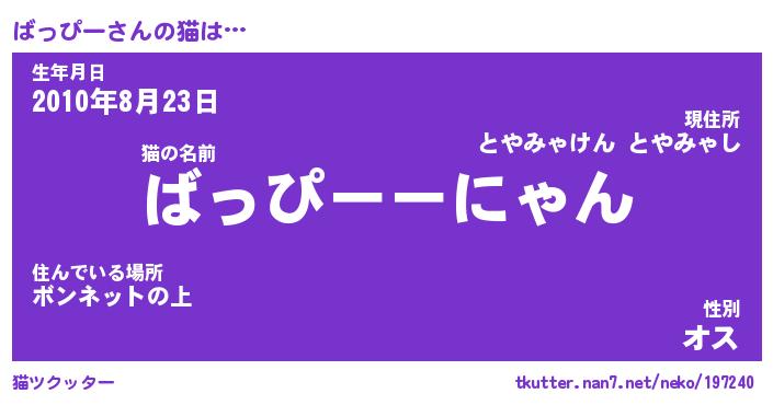 | 生年月日? …「くろねこ」 | 8月01日 10:16 |