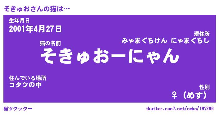 | 意味不明あだ名 | 『ペロリンそきゅお』『永久保存そきゅお』 |