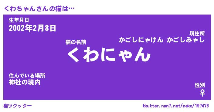 | ヒーロー風カッコイイあだ名 | 『スーパークワチャン』『銀牙騎士クワ』 |