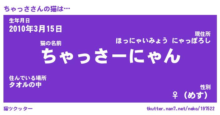 | 意味不明あだ名 | 『ペロリンちゃっさ』『永久保存ちゃっさ』 |