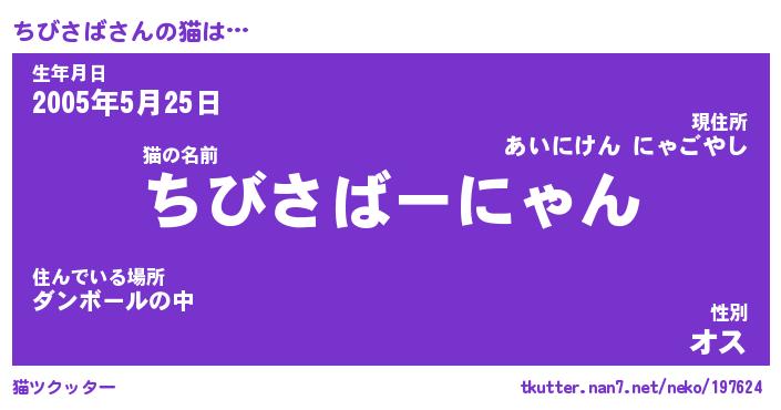 | 欧米人風あだ名 | 『マイケルちびさば』『ウサインちびさば』 |