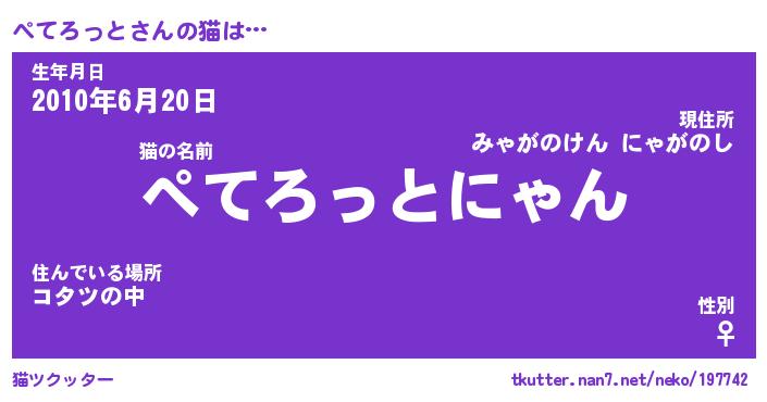| 女子向けラノベタイトル風あだ名 | 『(仮)ぺてろっとのやんごとなき事情』 |
