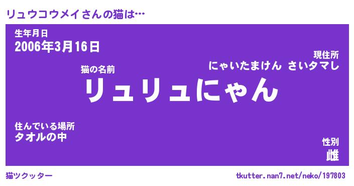| ヘコむあだ名 | 『リュにゅー』『豆乳』『リュを』 |