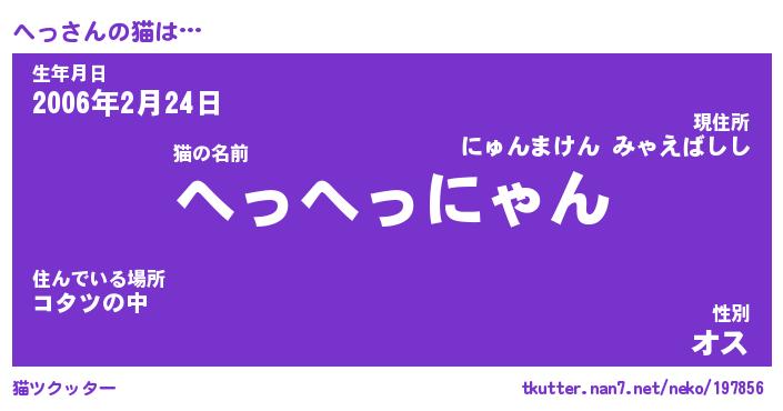 | 生年月日? …「くろねこ」 | 8月01日 10:16 |