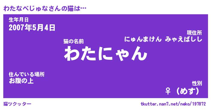 | ポケモン風あだ名 | 『ワタチュウ』『ワタナダネ』 |