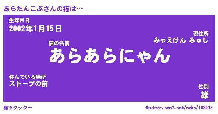 | 生年月日? …「くろねこ」 | 8月01日 10:16 |