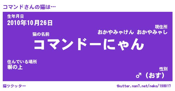 | ファンタジー風あだ名 | 『コマフェル』『エターナルコマンドー』 |