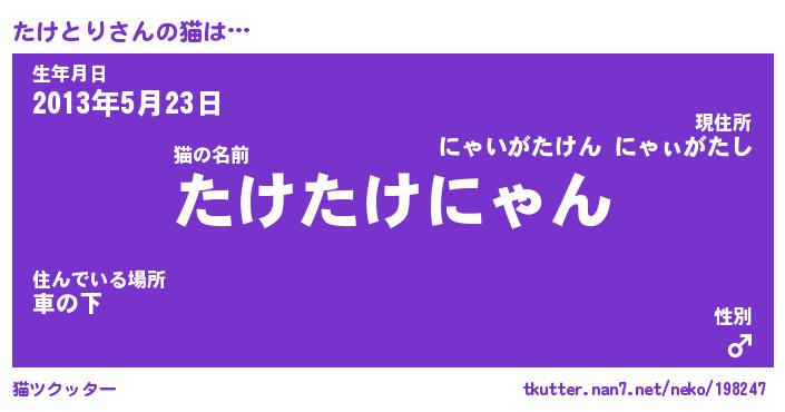 | 2回繰り返すあだ名 | 『たけたけ』『たたけけ』『おやおや』 |