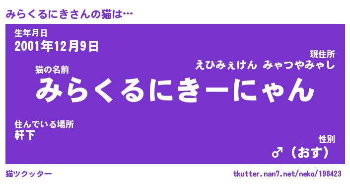 | ツイッター | みらくるにきさんのツイッターID『namakemono_star』 |