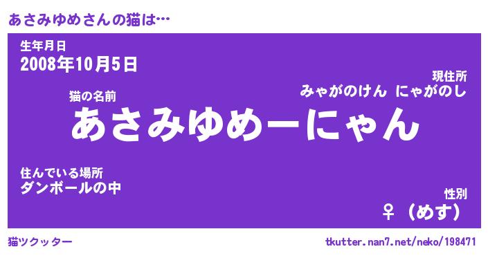 | ファンタジー風あだ名 | 『アサフェル』『エターナルアサミユメー』 |