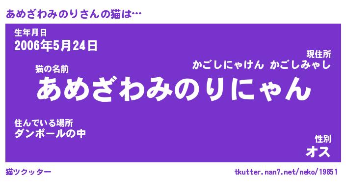 | ポケモン風あだ名 | 『アメチュウ』『アメザダネ』 |