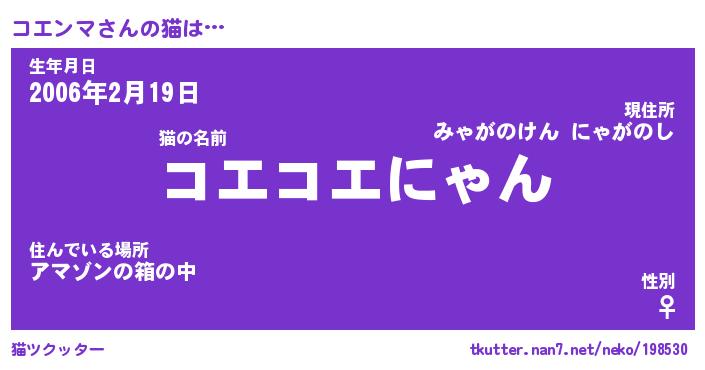 | ファンタジー風あだ名 | 『コエフェル』『エターナルコエンマー』 |