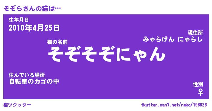| ヘコむあだ名 | 『そぞにー』『豆乳』『そぞっ子』 |