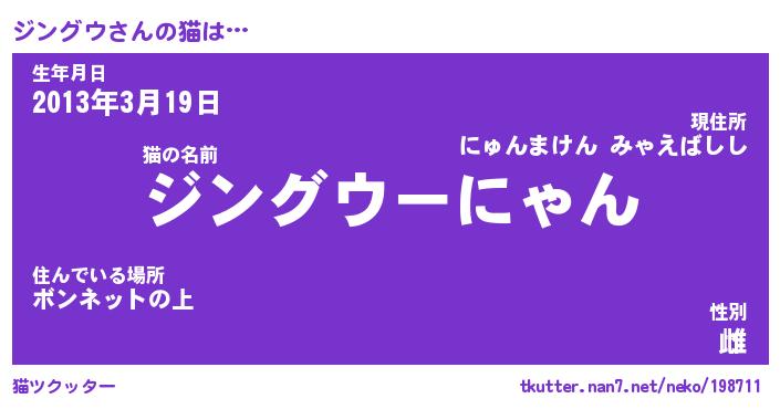 | ファンタジー風あだ名 | 『ジンフェル』『エターナルジングウー』 |