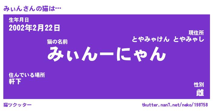 | ファンタジー風あだ名 | 『ミィフェル』『エターナルミィンー』 |