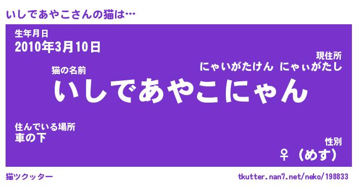 | ヒーロー風カッコイイあだ名 | 『スーパーイシデアヤコ』『暗黒騎士イシ』 |