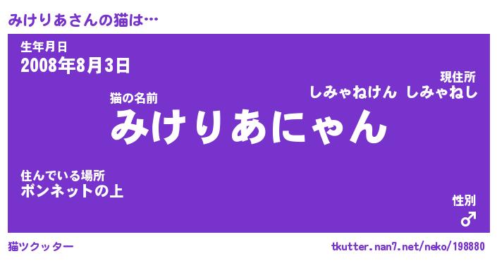 | 肩書あだ名 | 『みけりあ店長』『みけりあ大統領』 |