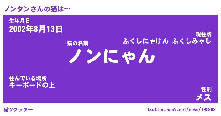 | ポケモン風あだ名 | 『ノンチュウ』『ノンタダネ』 |