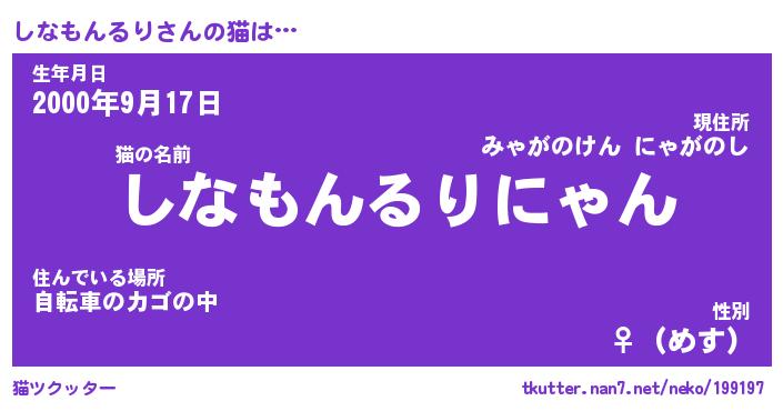| 男性向けラノベタイトル風あだ名 | 『しなもんるりの憂鬱』 |