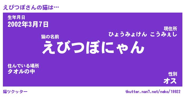 | 意味不明あだ名 | 『ペロリンえびつぼ』『永久保存えびつぼ』 |