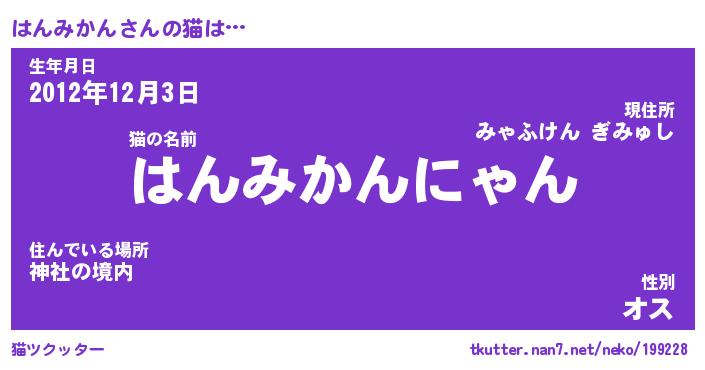 | ヒーロー風カッコイイあだ名 | 『スーパーハンミカン』『天弓騎士ハン』 |