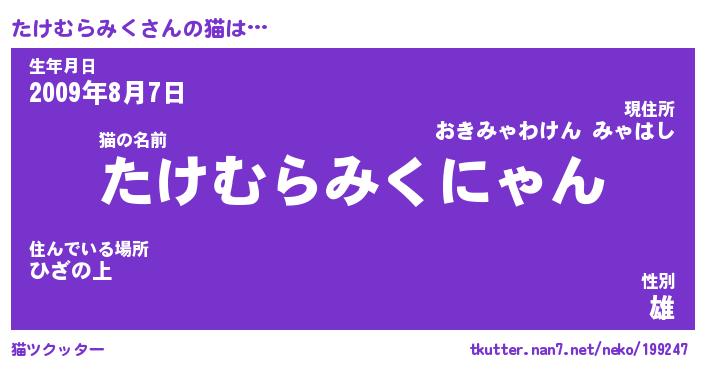 | 生年月日? …「くろねこ」 | 8月01日 10:16 |