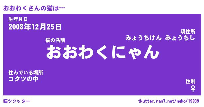 | 意味不明あだ名 | 『ペロリンおおわく』『永久保存おおわく』 |