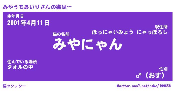 | ポケモン風あだ名 | 『ミヤチュウ』『ミヤウダネ』 |