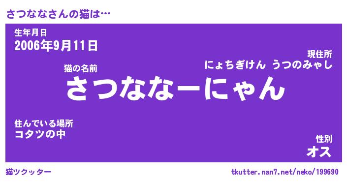 | ファンタジー風あだ名 | 『サツフェル』『エターナルサツナナー』 |