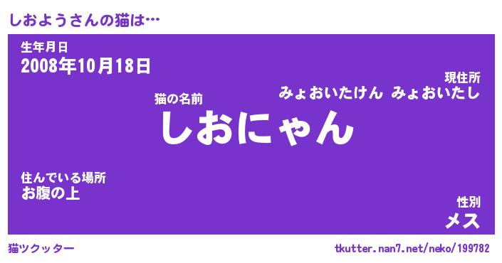 | 意味不明あだ名 | 『ペロリンしおよう』『永久保存しおよう』 |