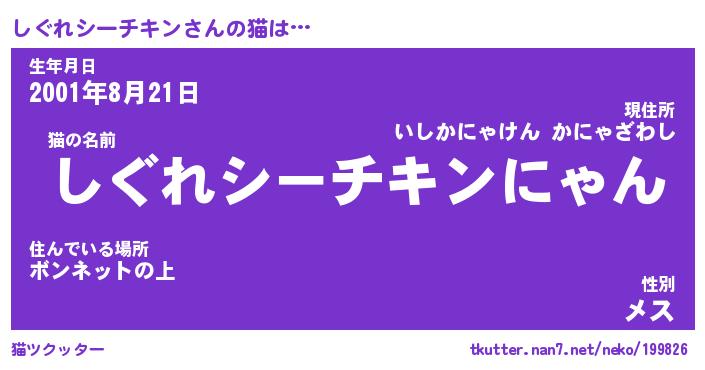 | 胡散臭い通販商品みたいなあだ名 | 『必ず成功する霊験あらたかなお札…その名も「しぐれシーチキン」』 |