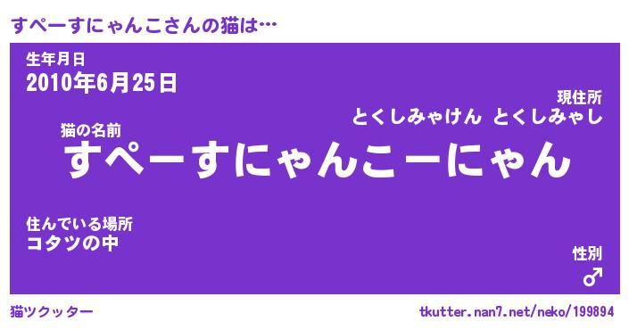 | 意味不明あだ名 | 『ペロリンすぺーすにゃんこ』 |