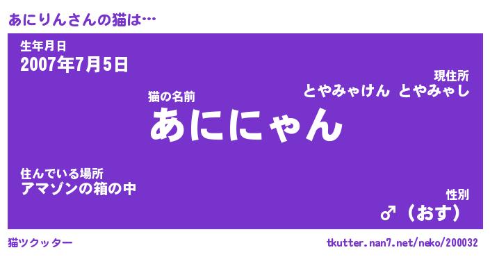 | ポケモン風あだ名 | 『アニチュウ』『アニリダネ』 |