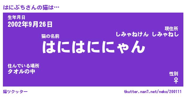 | 生年月日? …「くろねこ」 | 8月01日 10:16 |