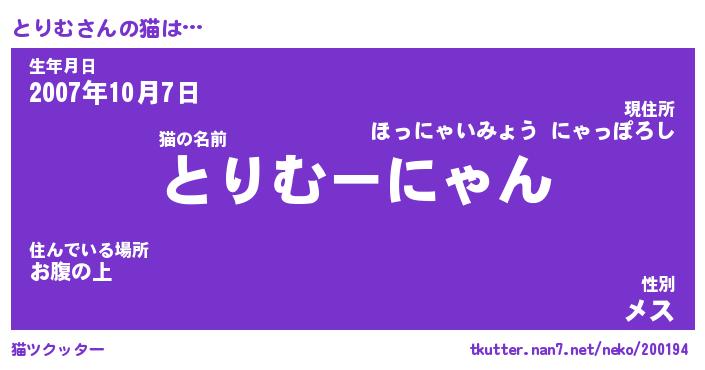 | 生年月日? …「くろねこ」 | 8月01日 10:16 |