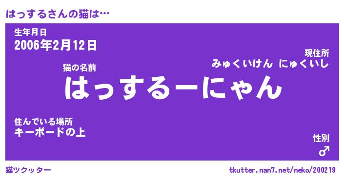 | 生年月日? …「くろねこ」 | 8月01日 10:16 |