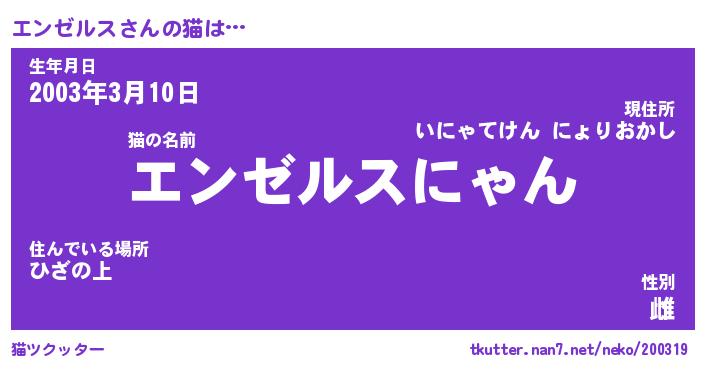 | 生年月日? …「くろねこ」 | 8月01日 10:16 |