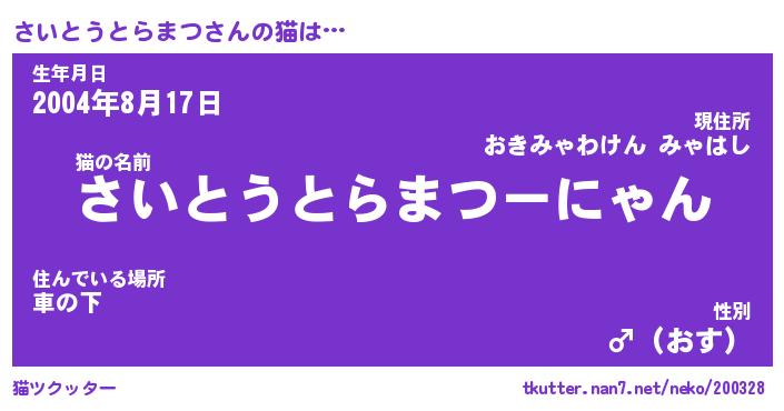 | 生年月日? …「くろねこ」 | 8月01日 10:16 |