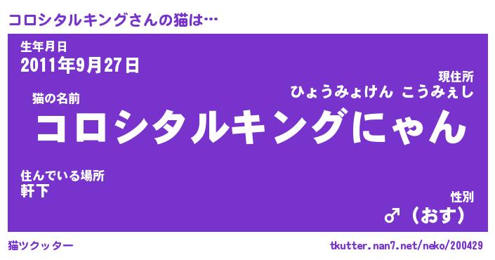 | 男性向けラノベタイトル風あだ名 | 『コロシタルキングの憂鬱』 |