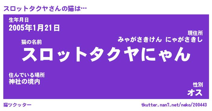 | 男性向けラノベタイトル風あだ名 | 『スロットタクヤの憂鬱』 |