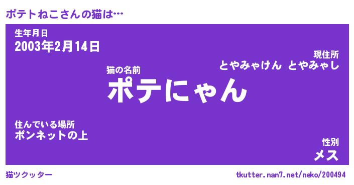 | ヒーロー風カッコイイあだ名 | 『スーパーポテトネコ』『幻影騎士ポテ』 |
