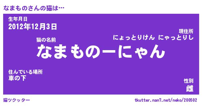 | ファンタジー風あだ名 | 『ナマフェル』『エターナルナマモノー』 |