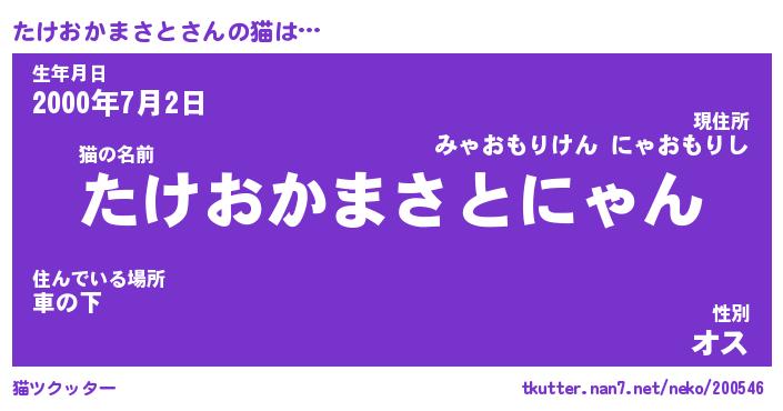 | 男性向けラノベタイトル風あだ名 | 『たけおかまさとの憂鬱』 |