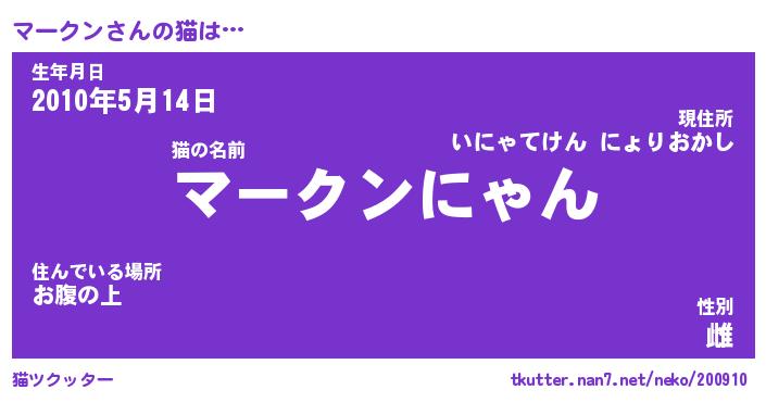 | 男性向けラノベタイトル風あだ名 | 『マークンの憂鬱』 |