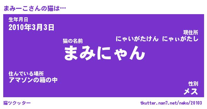 | 意味不明あだ名 | 『ペロリンまみーこ』『永久保存まみーこ』 |